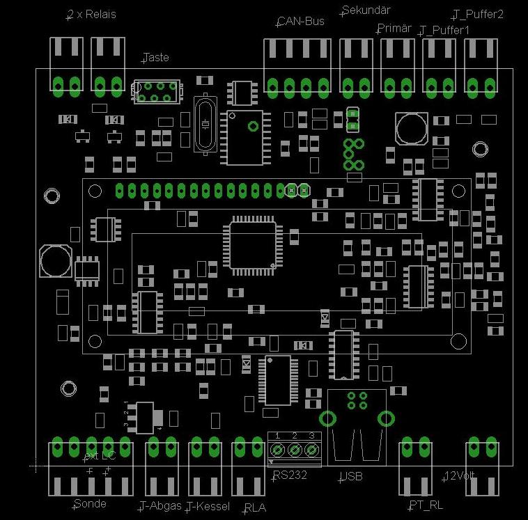 In Bild 3 ist der Aufbau der Leiterkarte dargestellt. Größe entspricht exakt der des LambdaCheck.